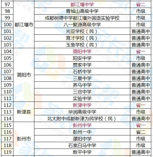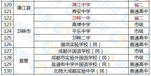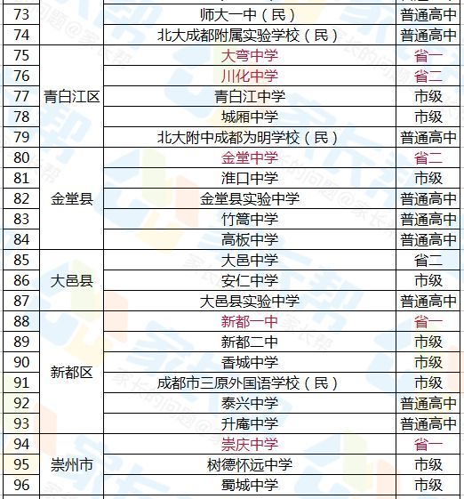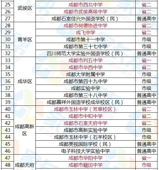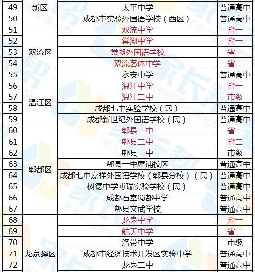 但值得关注的是双流区,作为郊县,居然有三所省一级,双流的教育水平不容小觑。