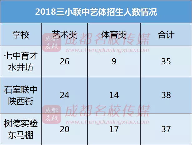 三小联中虽然实力强,出口成绩好,教学方面又各有优势,但是三所学校有两所在青羊区,一所在锦江区,艺体生招生2019是最后一届,只能让其他区的家长们望尘莫及。