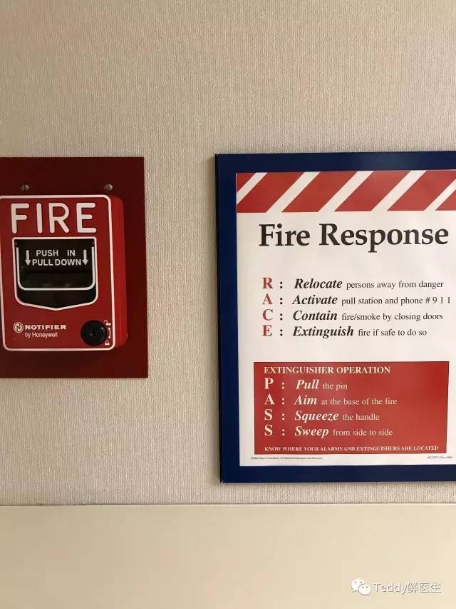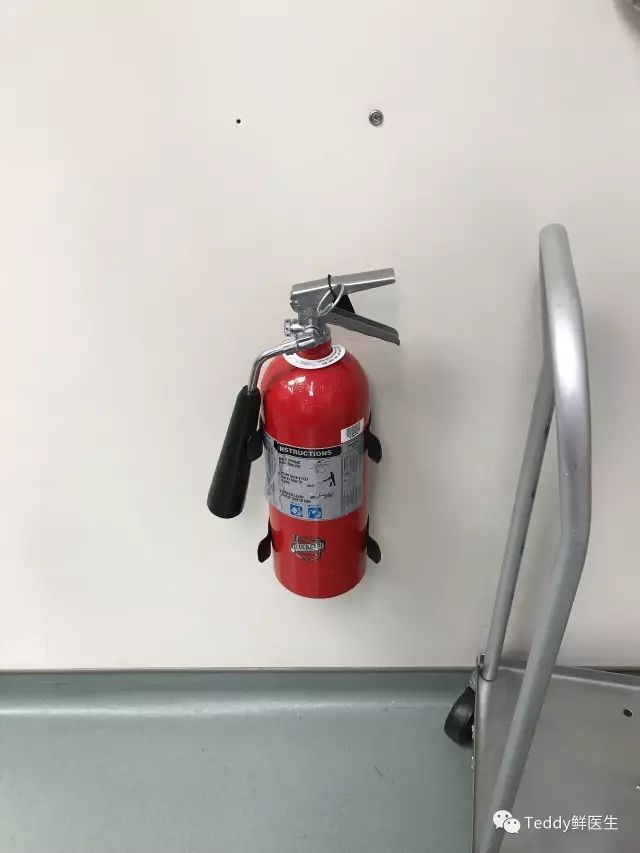 美国的手术室都特别注意防范火灾,每个手术室都配备一个灭火器