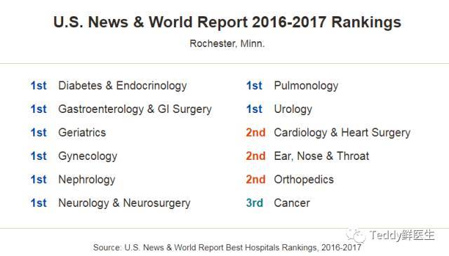 梅奥有多个学科排名全美第一,是全美所有医院中拥有最多NO.1专科的医院