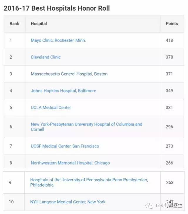 综合实力排名前三的是:梅奥,克利夫兰和麻省总医院