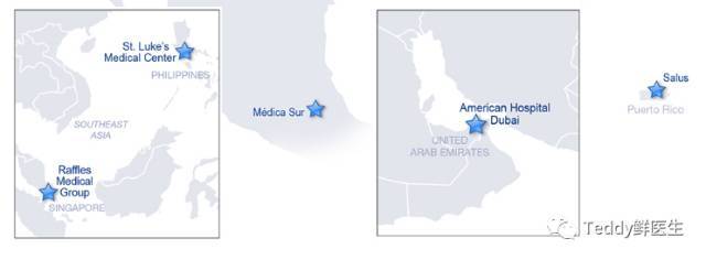 在海外的新加坡、菲律宾、阿联酋、波多黎各等地都有诊所或跟当地医疗集团有合作关系。梅奥自己体系以外的医生转介病人到梅奥就诊的,梅奥会给转介医生一定的“回报”(Support)。梅奥的病人80%来自明尼苏达州周边的十个州,15%来自比较远的美国东西海岸,还有5%来自海外的高端病人,包括中东王室、世界各国的超级富豪或演艺名人。梅奥本身有超高的名气,又有遍布全国的诊所,还把触角伸到了海外,所以她的病人源源不断,光罗彻斯特那个院区每天新收病人就一两千人。