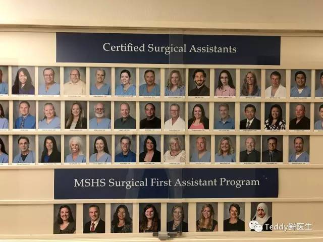 梅奥把医生的工作分得更细,他们专门培养出了这种外科助手(Certified Surgical Assistants)。外科助手不是医生,他们是从本科毕业生中招募的,不需要医学背景,然后进入这种外科助手学校,学习一年手术相关的知识,考核通过后就可以持证上岗了。每个外科医生配一两个专用助手,这些助手经过培训之后会帮忙做手术前皮肤消毒、器械准备等工作,手术期间帮忙暴露手术野、拉钩,完了帮忙一起关腹。下面的“第一助手”估计学习周期更长、要求更高,有更多动手的权限。这样子极大的缓解了上手术的外科医生的人力紧张问题,因为外科助手要求不高,短期培训即可上岗,不像外科医生要培训十几年,医院也节约了成本。