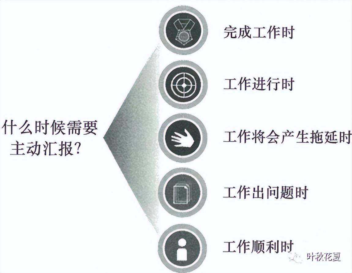 每个上司都希望自己的下属能够像时钟那样主动、精确、准时地汇报。通常在以下5个节点的时候需要主动汇报,并根据上司的偏好来调整汇报的频率和内容。主动汇报有助于你获取最新的情报,并且获取上司支持和帮助的方法。