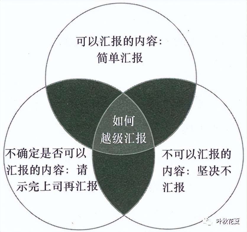 越级汇报是职场大忌。越级汇报就是越权,当你越级汇报时,你把你的上司置于何地?上司的上司会如何看待你的上司?你的上司又会如何看待你?如果有不得不越级汇报的时候,现将拟汇报的内容进行分类,然后针对不同的内容确定报告策略。比如可以汇报的内容进行简单汇报、不确定是否可汇报的内容请示完自己的领导再汇报、不可以汇报的内容坚决不汇报。