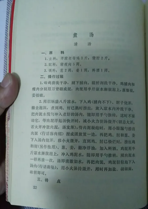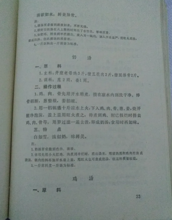 原料:A:猪筒子骨12.5千克,老母鸡7.5千克,金华火腿2.5千克,肉皮1.5千克,猪手3千克,瑶柱、干贝各0.5千克,大地鱼0.25千克,海米0.35千克,鸡爪1千克,清水75千克。